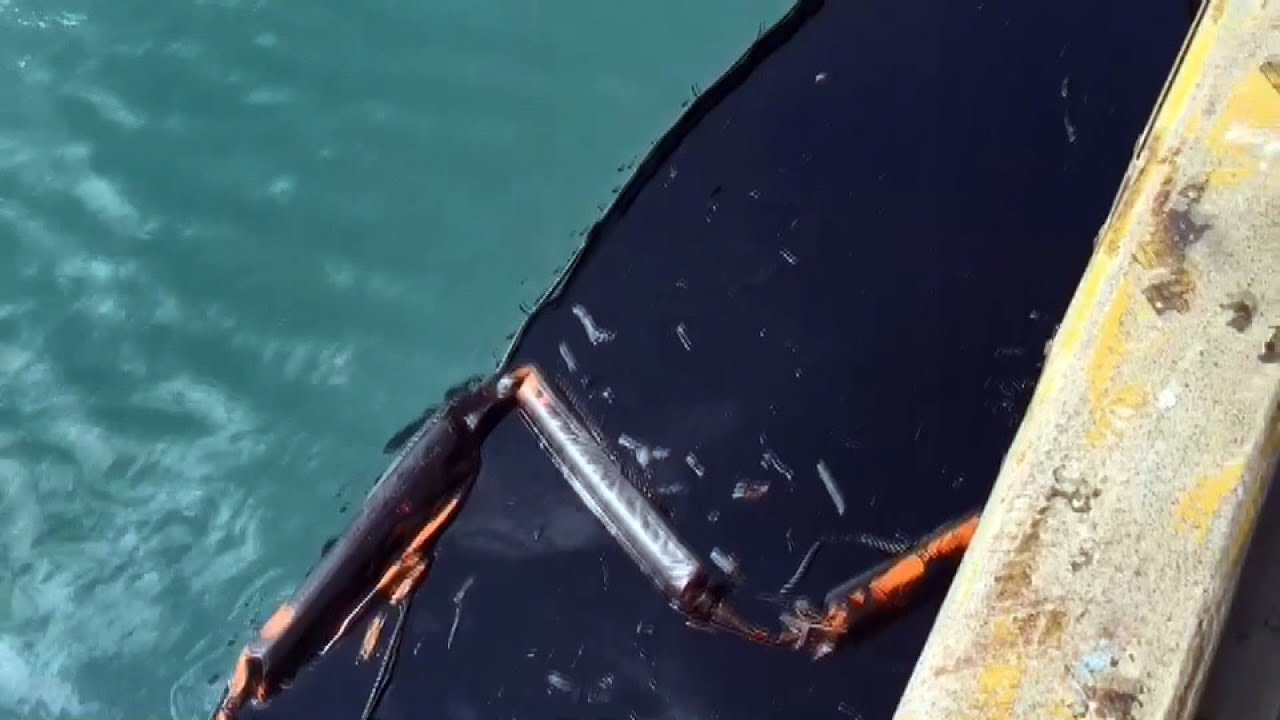 海棠新聞網 大溪漁港水面漂黑油污海巡緊急鋪設攔油索以防擴散 海棠新聞網